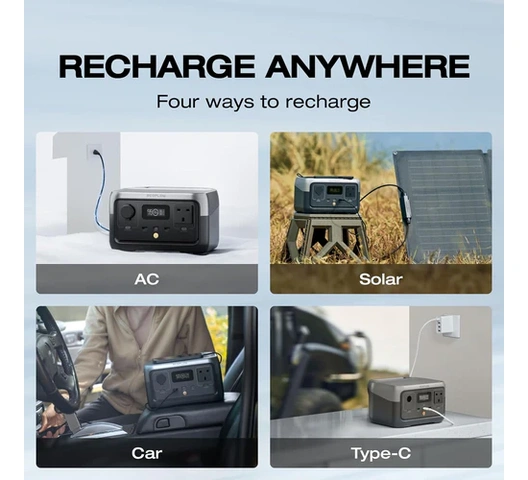 - Versatile 4-Way Charging: Power up via AC wall socket, car charger, USB-C, or compatible solar panels.