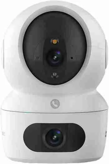 This dual-lens indoor camera offers enhanced visibility by combining two lenses into one system. As a result, users can monitor multiple angles simultaneously without installing separate devices. In addition, the pan and tilt function allows flexible viewing, which improves overall coverage in larger rooms.