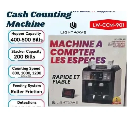 The Lightwave LW-CCM-901 Cash Counting Machine delivers fast and accurate banknote counting with a touch-screen display and advanced detection technology. It is designed for retail stores, banks, and offices that require reliable cash management.